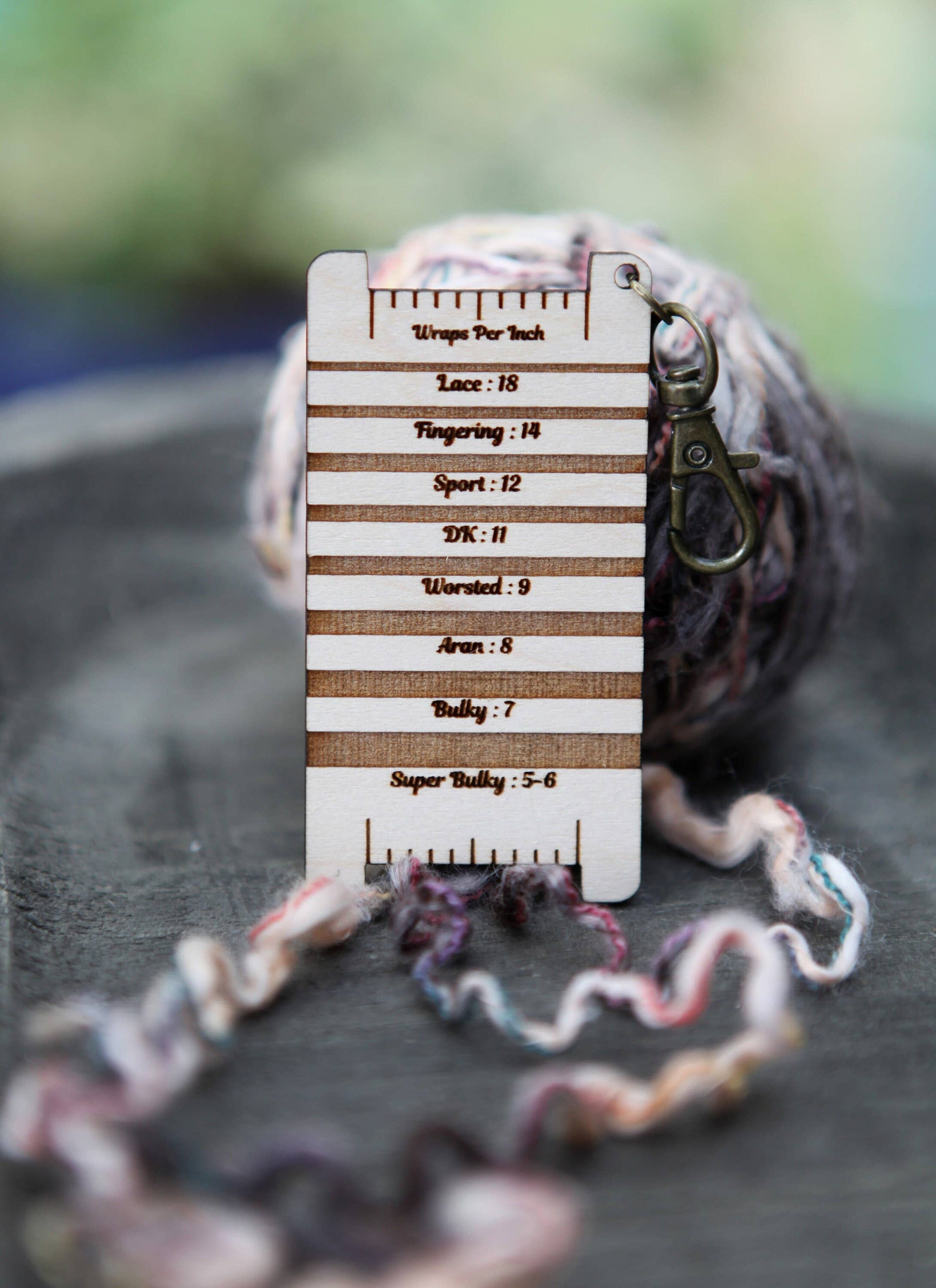 Wraps per inch (WPI) is a way to measure the thickness of a yarn. This tool is used by spinners, but is also helpful for knitters and crocheters to determine the weight of the yarn and what the approximate gauge will be. This guide also has lines on the back to measure your yarn against, including lace, fingering, sport, DK, worsted, bulky and super bulky.
