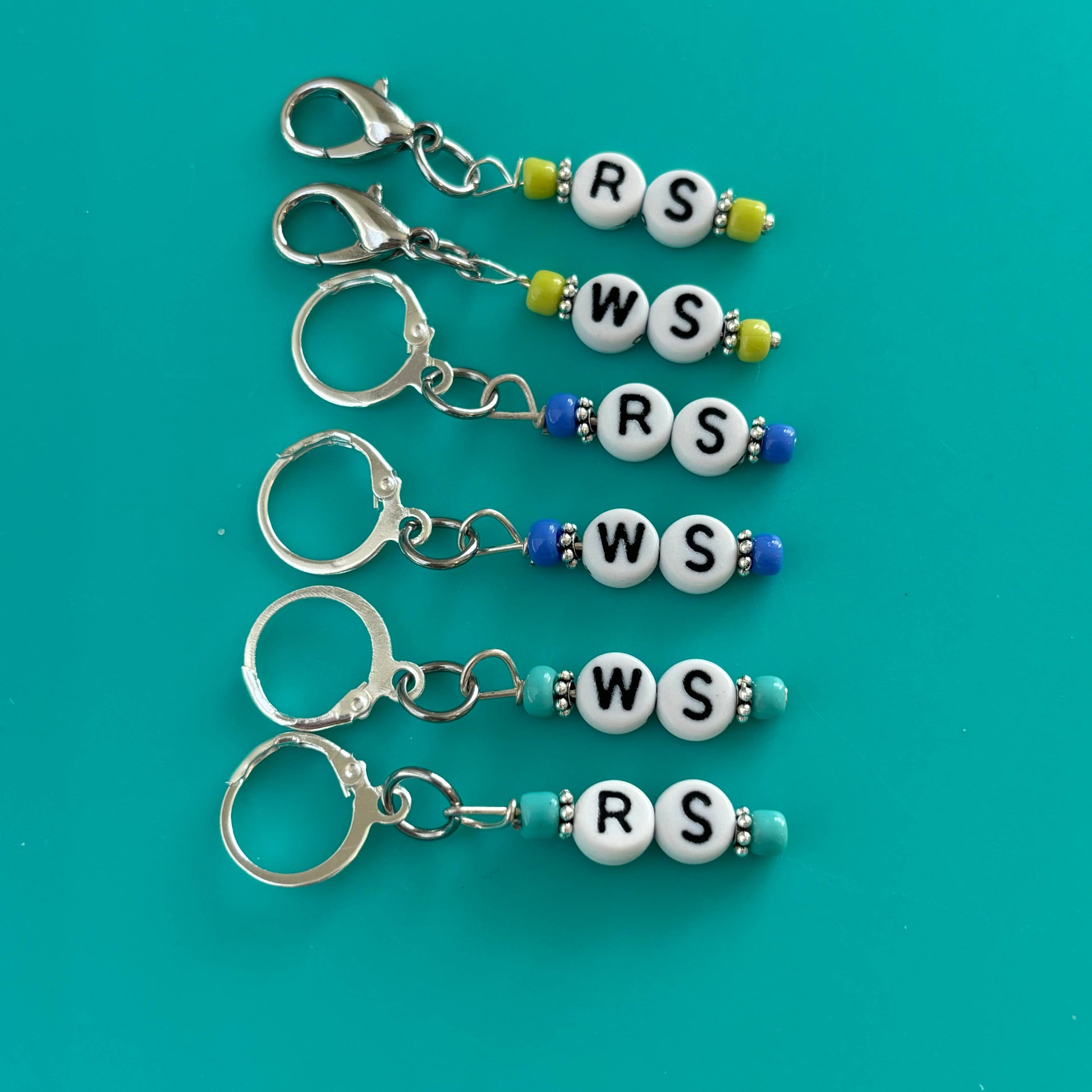 Each handmade set of TWO (one RS, one WS) fun stitch markers are made by me!